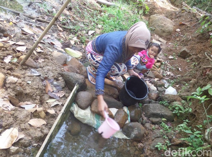Warga mengambil air di 'sumur siuk'. (Foto: Dadang Hermansyah/detikcom) |