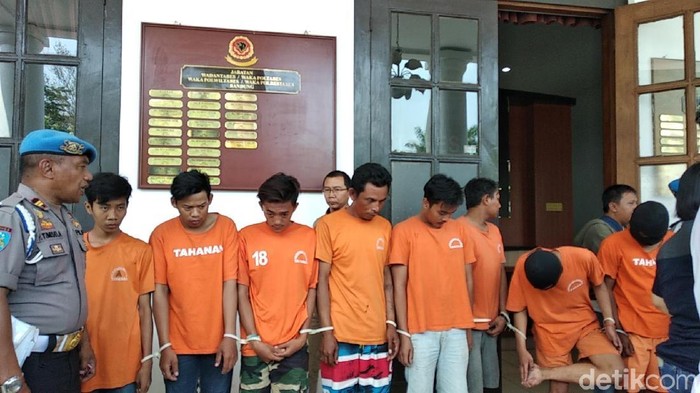 Para tersangka pengeroyok suporter Persija, Haringga Sirla. (Foto: Dony Indra Ramadhan/detikcom)