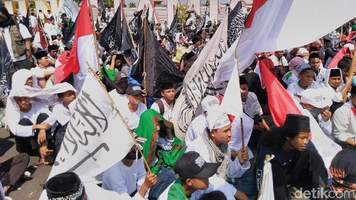 "Aksi bela kalimat tauhid ini sebagai bentuk rasa cinta kami terhadap kalimat tauhid. Cinta kami terhadap panji rosul. Kami berharap atas pembakaran itu hukum ditegakan setegak-tegaknya," ujar Korlap aksi Andi Ali Fikri.