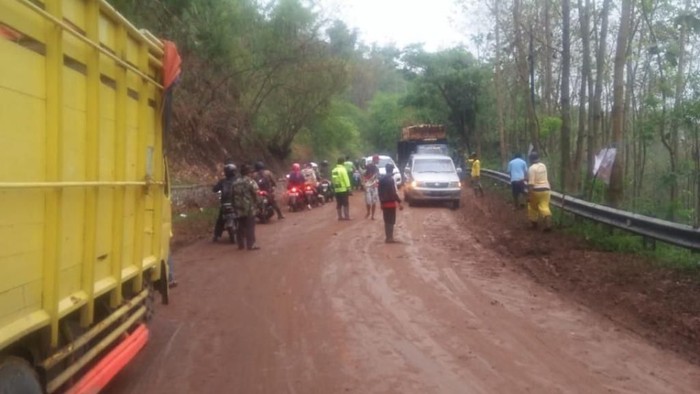 Yana berujar, jalan tersebut masih dapat dilintasi, namun para pengguna jalan khususnya pengguna sepeda motor harus berhati-hati pasalnya jalan licin.