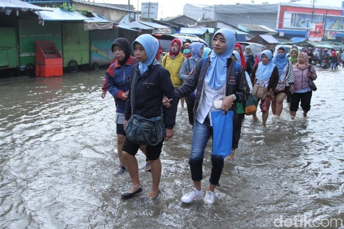 Pantauan detikcom, Senin (12/11/2018) rata-rata warga yang menerobos genangan banjir adalah mereka yang hendak berangkat bekerja ke Kawasan Industri Dayeuhkolot dan para pelajar yang bersekolah di wilayah Dayeuhkolot dan sekitarnya.
