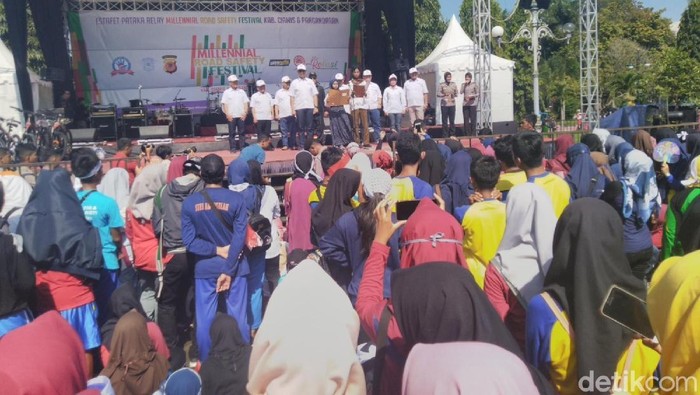 "Pada momen jalan sehat dan senam kolosal milenial ini, kami mengajak kaum milenial untuk selamat berlalu lintas di jalan raya. Karena menurut penelitian 60 persen dari korban yang meninggal itu usia milenial," ujar Kapolres Ciamis AKBP Bismo Tegun Prakoso.
