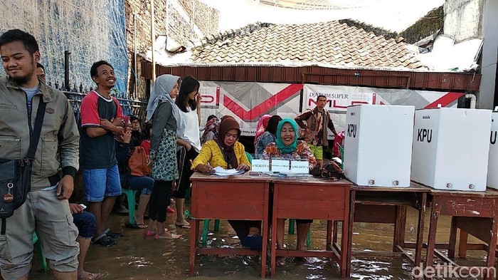 "Alhamdulilah warga walaupun banjir, tetap datang. Ini sudah 60 persen dari 250 pemilih," ucap Nono yang juga ketua RT 04 RW 05.