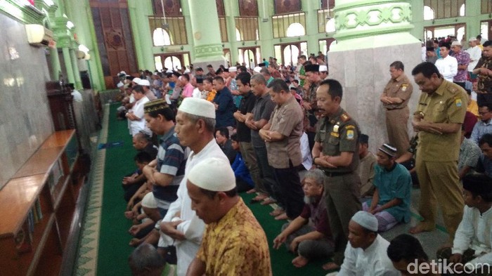 Salat gaib untuk petugas pemilu yang meninggal di Cirebon. (Foto: Sudirman Wamad/detikcom) |