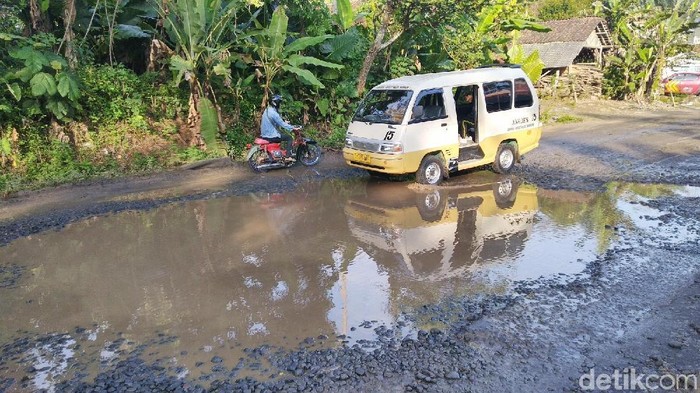 "Pengendara motor sering ada yang jatuh karena menginjak kubangan ini. Untuk mengantisipasinya motor biasa lewat pinggir," kata Nana.