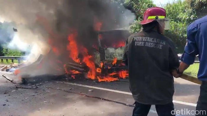 Insiden tersebut berlangsung sekitar pukul 11.00 WIB. Toni yang melaju dari arah Jakarta menuju Bandung, bergegas menepikan kendaraan ke bahu jalan. Ia sempat berusaha memadamkan api dengan air seadanya.