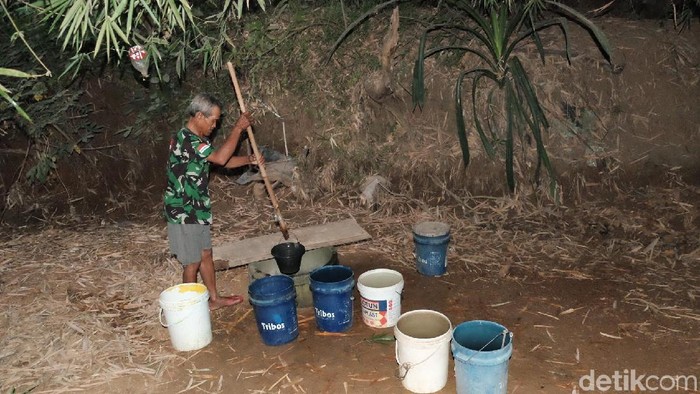 Untuk memenuhi kebutuhan air harian, mereka mengandalkan sumur darurat. Sumur - sumur itu digali di sungai yang telah mengering. "Sudah dua bulan sulit air di sini. Setiap kemarau memang selalu seperti ini," kata Sarkowi (67) saat ditemui detik di Sungai Cirinjing, Jumat (5/7/2019).