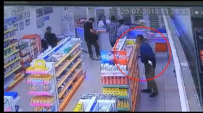 Dalam video yang diunggah Instagram @lembangnews, terlihat seorang pria berbaju biru tengah memilih-milih barang di deretan rak obat. Ia terlihat mengintip ke arah kasir, kemudian memasukkan sejumlah obat ke balik bajunya.