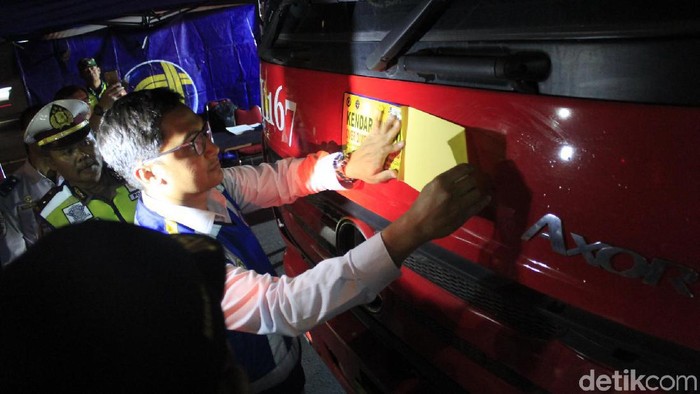 Kendaraan yang kelebihan muatan dan panjang yang melebihi dimensi atau over dimension and over load (ODOL) akan diberi striker peringatan oleh petugas.