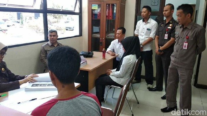 Tersangka V, sebagai pemeran wanita, dan W salah satu pemeran lelaki dalam video 'seks gangbang', itu ditahan di Rutan Garut.