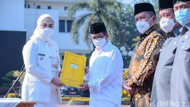Bupati Karawang Cellica Nurrachadiana melantik 5 orang pejabat pimpinan tinggi pratama hasil seleksi terbuka (Selbuk) yang dilaksanakan pada tahun 2020.