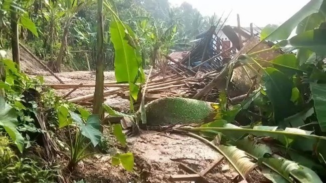 Longsor terjadi di dua desa di Kecamatan Cibeber Kabupaten Cianjur, Jawa Barat, Jumat (4/6/2021). Akibatnya liam rumah rata dengan tanah dan belasan rumah rusak ringan.