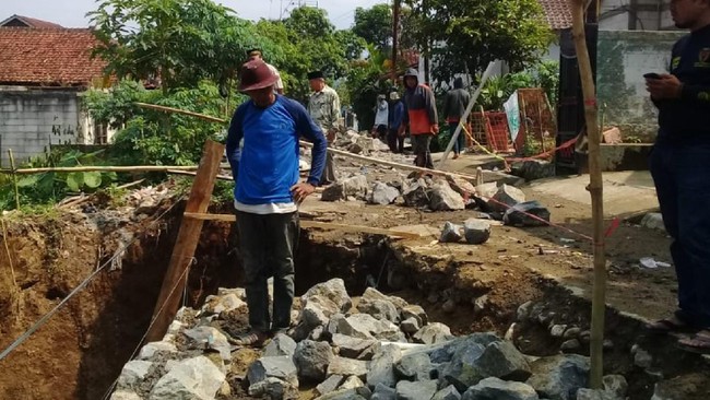 Tiga pekerja perbaikan jalan tertimbun tanah di Desa Purwasari, Kecamatan Cicurug, Kabupaten Sukabumi, Rabu (9/7/2021), sekitar pukul 09.00 WIB. Tidak ada korban jiwa akibat insiden tersebut.
