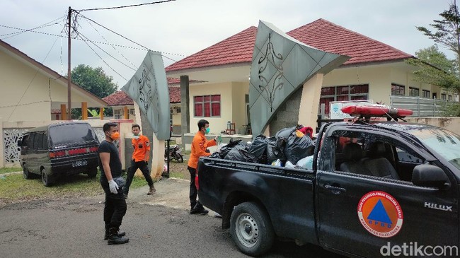 Pantauan detikcom di gedung Sanggar Kegiatan Belajar (SKB) yang dijadikan tempat isolasi puluhan santri Ponpes Al-Qur'aniyyah, petugas BPBD Majalengka tampak sibuk memindahkan barang-barang milik santri ke dalam mobil pick up.