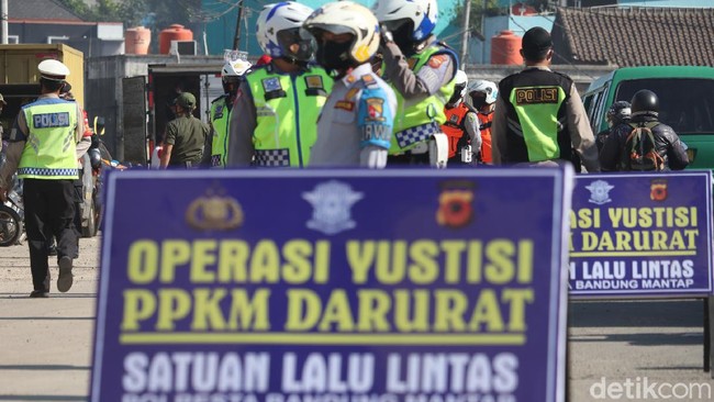 "Kami dari Polresta Bandung bersama personel Kodim, Dinas Perhubungan dan Satpol PP melaksanakan rangkaian kegiatan PKKM Darurat yang dimulai tanggal 3 Juli," kata Kanit Turjawali Polresta Bandung AKP Kiki Hartaki kepada detikcom disela kegiatan.