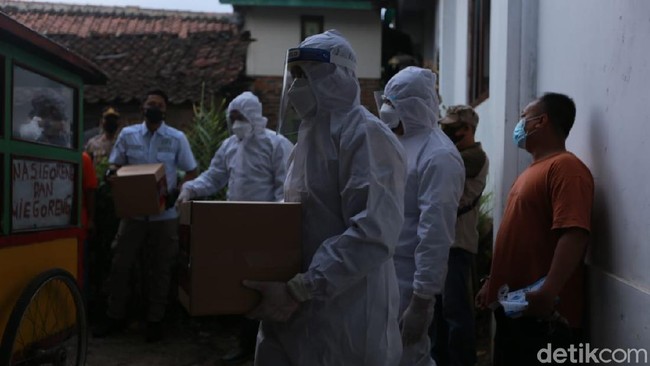 Aksi sosial di masa PPKM Darurat dilakukan sejumlah pejabat di Kabupaten Garut, menyambangi sejumlah warga yang tengah melaksanakan isolasi mandiri. Menggunakan Alat Pelindung Diri (APD) lengkap, mereka datang memberikan bantuan.