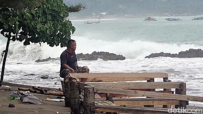 "Kalau saya dan teman-teman langsung membereskan kursi, tinggi ombak antara 5 sampai 6 meteran. Kalau masalah korban (jiwa) enggak ada paling kursi-kursi doang, kondisi warung sedang sepi," kata Ajiz.