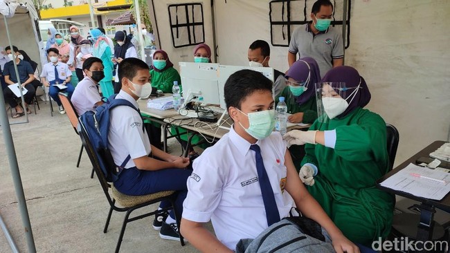 Pemkab Ciamis melakukan kick off vaksinasi anak secara serentak. Secara simbolis, vaksinasi anak dilaksanakan di halaman parkir RSOP Ciamis, kepada 60 anak SMP, Rabu (28/7/2021). Target vaksinasi anak di Ciamis sebanyak 118 ribu orang.