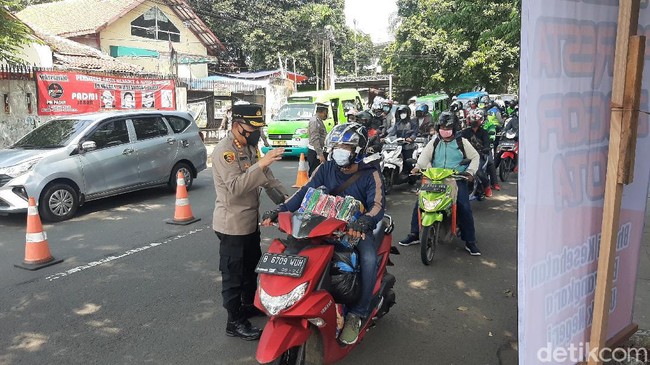 "Sudah daftar pak, ikut di kelurahan saja, besok," kata seorang pengendara ketika ditanyai polisi.