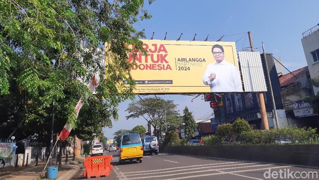 Dari pantauan detikcom, wajah Airlangga terpampang mulai dari Jalan Raya Jakarta Lingkungan Pakupatan menuju pintu masuk Terminal Pakupatan yang melayani transportasi antar kota antar provinsi. Baliho besar terpampang dengan tulisan 'Kerja untuk Indonesia, Airlangga Hartarto 2024'. Di bawahnya spanduk ini dipersembahkan oleh Wasekjen DPP Partai Golkar Andika Hazrumy.