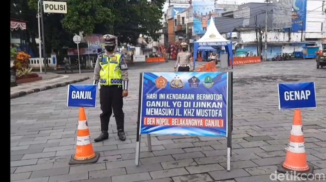 "Jadi kami terus bertugas pak untuk mensukseskan program ganjil genap ini. Kendaraan yang bisa melintas kawasan pusat perbelanjaan satu nomor plat saja bisa ganjil bisa genap yang disesuaikan tanggal per harinya," kata Zenzen, Perwira pengendali Ganjil Genap Polresta Tasikmalaya di lokasi.