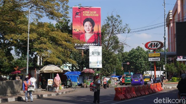 Baliho raksasa bergambar putri mantan Presiden Megawati Soekarnoputri mejeng di papan reklame di posisi yang amat strategis sehingga terlihat jelas oleh pengendara yang akan menuju ke pusat Kota Cimahi.