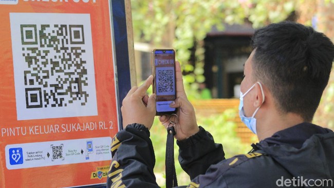 Pantauan detikcom, pengujung yang akan masuk ke dalam mal diwajibkan memindai barcode yang terpajang di pintu masuk. Di dalam aplikasi itu pengunjung yang telah divaksinasi, melakukan 'check in' dan terlihat berapa jumlah pengujung yang berada di dalam mal. Hal itu juga berlaku bagi pengujung yang hendak keluar mal, yakni dengan melakukan 'check out' lewat cara yang sama.