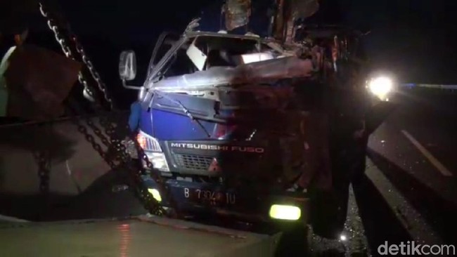 Mobil elf bernomor polisi B-7304-IU ringsek bagian depannya setelah menabrak truk kontainer yang tak diketahui identitasnya di jalan Tol Cipularang atau tepatnya kilometer 86, Kabupaten Purwakarta, Jawa Barat. Satu penumpang tewas akibat kejadian tersebut.