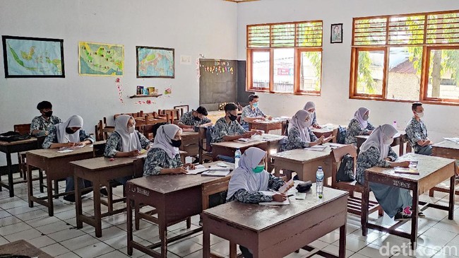 Salah satunya terlihat di SMAN 6 Pandeglang. Pantauan detikcom, Rabu (1/9/2021) pukul 09.00 WIB, beberapa ruang kelas di sekolah ini mulai diisi oleh siswa yang mengikuti pembelajaran tatap muka. Rombongan belajar pun dibagi maksimal 18 siswa dengan menerapkan prokes yang ketat.