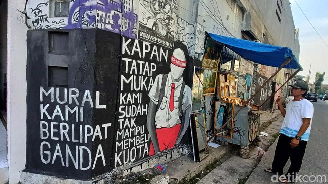Diberitakan sebelumnya, Rabu (1/9) kemarin, dalam pantauan detikcom tulisan 'Urus Rakyatmu Jangan Kau Urus Muralku' dihapus oleh cat tembok berwarna kuning, namun masih tampak jelas tulisan tersebut. Sementara untuk mural 'KAPAN TATAP MUKA KAMI SUDAH TIDAK MAMPU MEMBELI KUOTA' tidak tampak dihapus, hanya saja tertutup oleh lapak pedagang cermin.