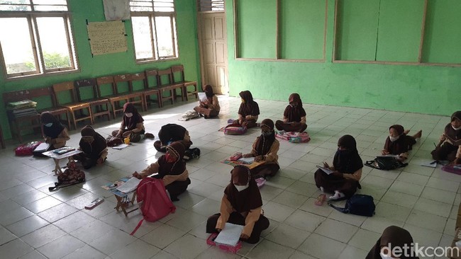"Yang ngedeprok (belajar di lantai) itu di ruang kelas 4 dan 5, itu sejak PTM. Kan saya bentuk kelompok, jadi belajarnya walaupun meja dulu diisi 6 orang. Sekarang duduknya satu-satu jaga prokes, jadinya akhirnya ada yang nggak kebagian," kata Kepala Sekolah SDN Cigelam 2 Ade Siti Aminah saat didatangi detikcom di Kabupaten Serang, Banten, Jumat (3/9/2021).