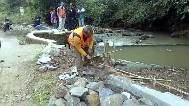 "Ku abdi (saya) sengaja melakukan itu supaya yang lain lebih hati-hati memanfaatkan anggaran. Kita beritahu dulu soal kondisi pekerjaan mereka ke pengusahanya, kemudian kami bongkar sebagian yang kedapatan menggunakan pasir merah. Ameh jera lah, tuman (biar jera, tidak jadi kebiasaan), itu di daerah Cicurug," ujar Asjaf.