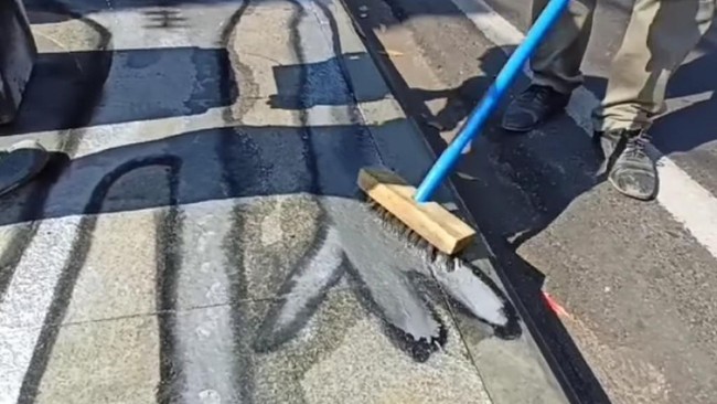 Pembersihan menggunakan sikat dan disertai tiner. "Dibersihkan menggunakan tiner," tuturnya.