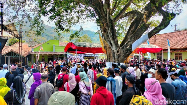 Warga saling berebut untuk mendapatkan jajanan dan hasil bumi seperti buah, umbi-umbian, nasi tumpeng dan sayuran. Padahal petugas keamanan di lokasi telah menyerukan warga untuk menjaga protokol kesehatan. Namun upaya tersebut tidak diindahkan.