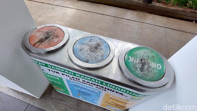 Masing tempat sampah itu memiliki warna berbeda. Warna hijau untuk sampah organik, biru muda anorganik dan oranye sampah B3. Selain itu terdapat sejumlah tulisan mengkampanyekan untuk memilah sampah. Namun, saat melihat isi dari tempat sampah tersebut tampak sampah organik dan anorganik masih tercampur