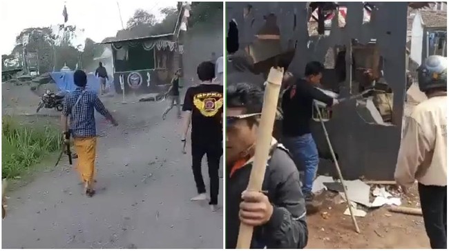 Markas salah satu ormas di perbatasan Cianjur-Sukabumi dikabarkan dirusak massa. Video aksi perusakan markas ormas tersebut tersebar melalui aplikasi perpesanan dan media sosial.