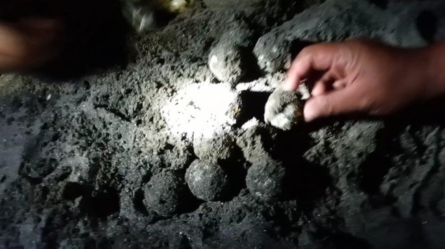 "Khawatir rusak karena abrasi atau predator, jadi kami bawa ke penangkaran. Kami mengapresiasi warga yang sudah memberitahukan penemuan telur penyu tempayan ini," kata Giwang.