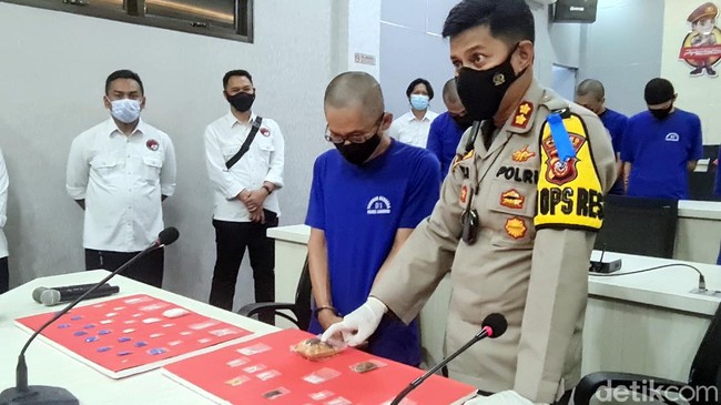 Dedy kemudian memanggil DF dari barisan para tersangka untuk dipamerkan kepada awak media. Ia meminta DF untuk menjelaskan soal barang bukti roti.