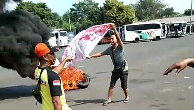 Informasi yang dihimpun detik.com, aksi bakar ban tersebut terjadi sekitar pukul 08.30 WIB. Tiga buah ban bekas dibakar para sopir yang kesal lantaran masih mendapati travel gelap beroperasi dan mengangkut penumpang.
