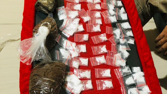 Tri menuturkan petugas lantas membuka bungkusan tersebut. Saat dibuka, petugas menemukan barang diduga narkotika dengan jumlah mencapai puluhan.