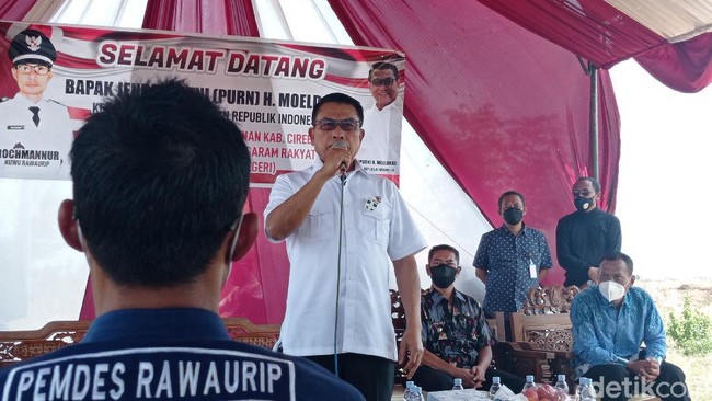 Petani garam mengeluarkan semua keluh kesahnya di hadapan Kepala Staf Kepresidenan (KSP) Moeldoko saat berkunjung ke Desa Rawaurip, Kecamatan Pangenan, Kabupaten Cirebon, Jawa Barat, Jumat (8/10/2021). Petani garam meminta Moeldoko untuk menyampaikan dan membuat kebijakan yang bisa meningkatkan kesejahteraannya.