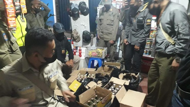 Dari tempat itu, petugas berhasil mengamankan 9 botol arak kecil dan sejumlah minuman yang mengandung alkohol lainnya sejenis bir.