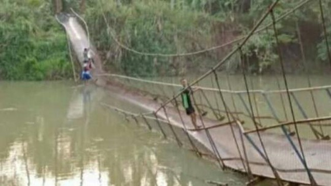 Jembatan gantung yang menghubungkan Desa Pasirloa, Kecamatan Sindangresmi dengan Desa Karyasari, Kecamatan Sukaresmi, Pandeglang, Banten ambruk dan tak bisa digunakan kembali oleh warga.