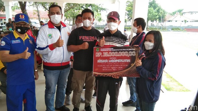 Adapun atlet yang menerima bonus dari Pemkab Majalengka ialah Riska Hermawan peraih medali emas cabor pencak silat di nomor ganda putri. Riska mendapat bonus sebesar Rp 35 juta.