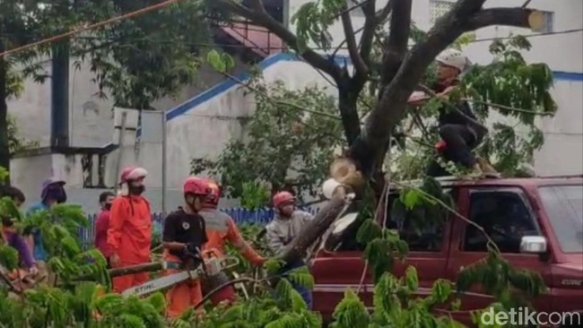 "Kami sekarang melakukan evakuasi pohon yang tumbang. Kami juga melakukan pemangkasan pohon di sampingnya untuk antisipasi. Kita tidak menebang karena harus ada izin," ujar Memet.