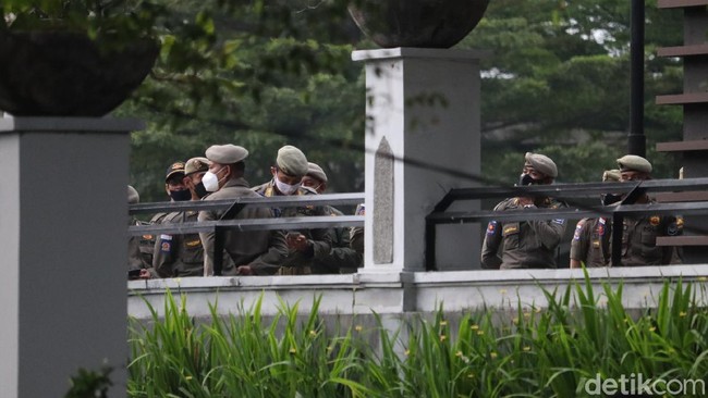 Tidak berselang lama, belasan anggota Satpol PP Kota Bandung membubarkan para pengunjung dan meminta pengunjung keluar dari kawasan Taman Alun-alun Bandung.