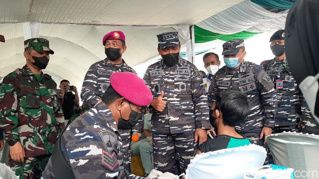 "Angkatan Laut mengerahkan 200 personil tenaga kesehatan, dengan sasaran 35 Kecamatan di Kabupaten Bogor. Alhamdulillah, sampai dengan hari ke-5 kami sudah memvaksin 64 ribu masyarakat," ungkap Wakil Kepala Staf Angkatan Laut (Wakasal) Laksamana Madya (Laksdya) TNI Ahmadi Heri Purwono saat meninjau serbuan vaksinasi TNI AL di Kecamatan Cijeruk, Kabupaten Bogor, Rabu (27/10/2021).