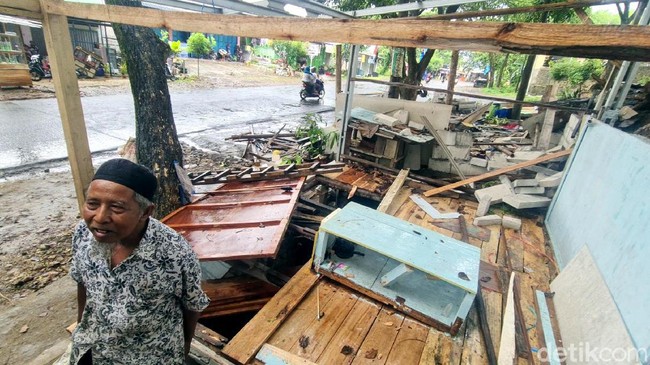 Slamet menunjukkan puing-puing di bekas rumah sekaligus warung yang selama ini huni. Dia mengaku sudah tiga kali menerima surat peringatan untuk meninggalkan bangunan tersebut.