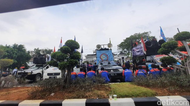 Dari pantaun detikcom, ribuan buruh memadati depan gerbang Pemkab Karawang dan membludak hingga menutup akses Jalan Ahmad Yani menuju arah Karawang Timur.