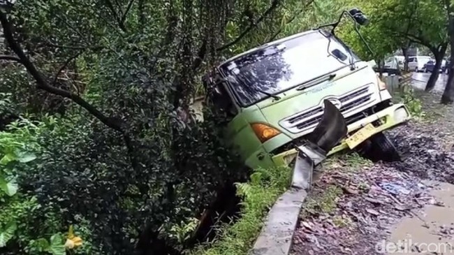 Truk bak terbuka tanpa muatan terperosok ke dalam jurang di Kampung Cibereum, Desa Pasirhalang, Kecamatan Sukaraja, Kabupaten Sukabumi. Polisi Menyebut sopir truk kabur ketika truknya itu mogok karena kehabisan BBM.